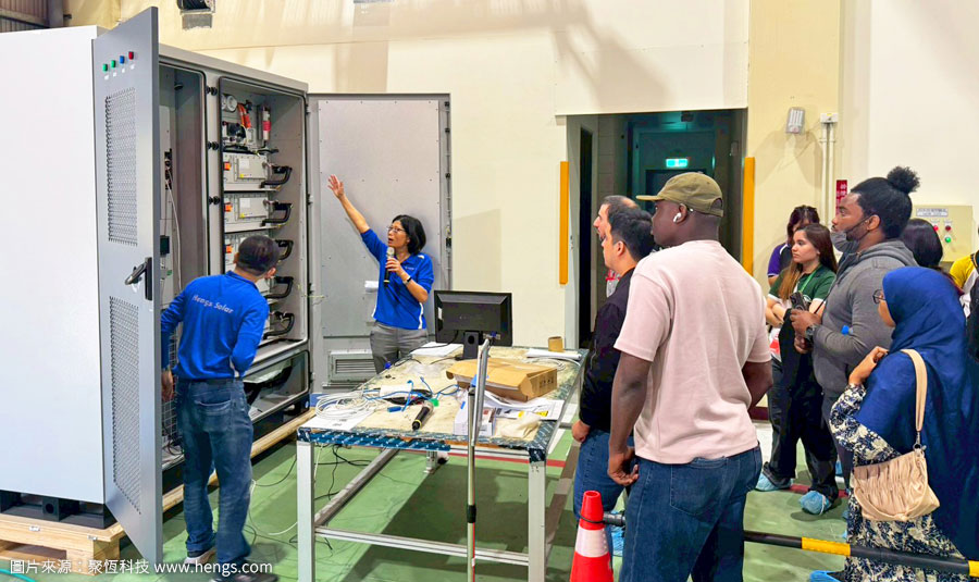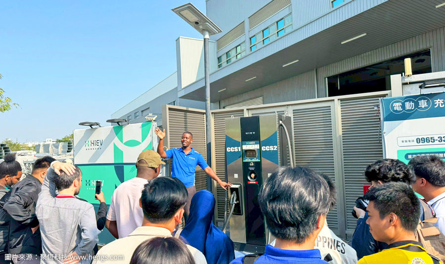 現場由業務團隊介紹公司發展歷程,並實地導覽廠區綠能設備亮點,包括各棟屋頂型太陽能電廠、表前儲能與AFC系統,以及400kW充放電設備,讓師生深入體驗聚恆在智慧能源管理上的多元實踐與創新成果。